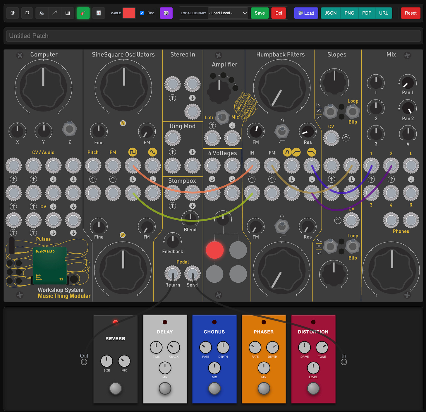 Unexpected end of year surprise: Vincent Maurer has just created Patch Notes, which includes an almost complete emulation of the Workshop System that you can play in your browser. It is work in progress, but what work, and what progress! Full of treats: the guitar icon launches pedals, the keyboard connects Midi to Computer, there are even program cards in there. INCROYABLE.