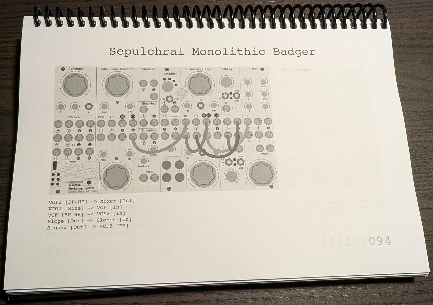 Patch The Random is a 200+ page ring bound book of completely random patches for the Workshop System, designed and produced by Oliver / Divmod. These random patches are a surprisingly mind-bending way to escape habits and loops, helping you reconsider assumptions you have about how the system should or could be used. The Second Edition is out now, with an improved (slightly less silly) randomisation system. It’s available worldwide in print here, or as a PDF from the Discord server (login required).