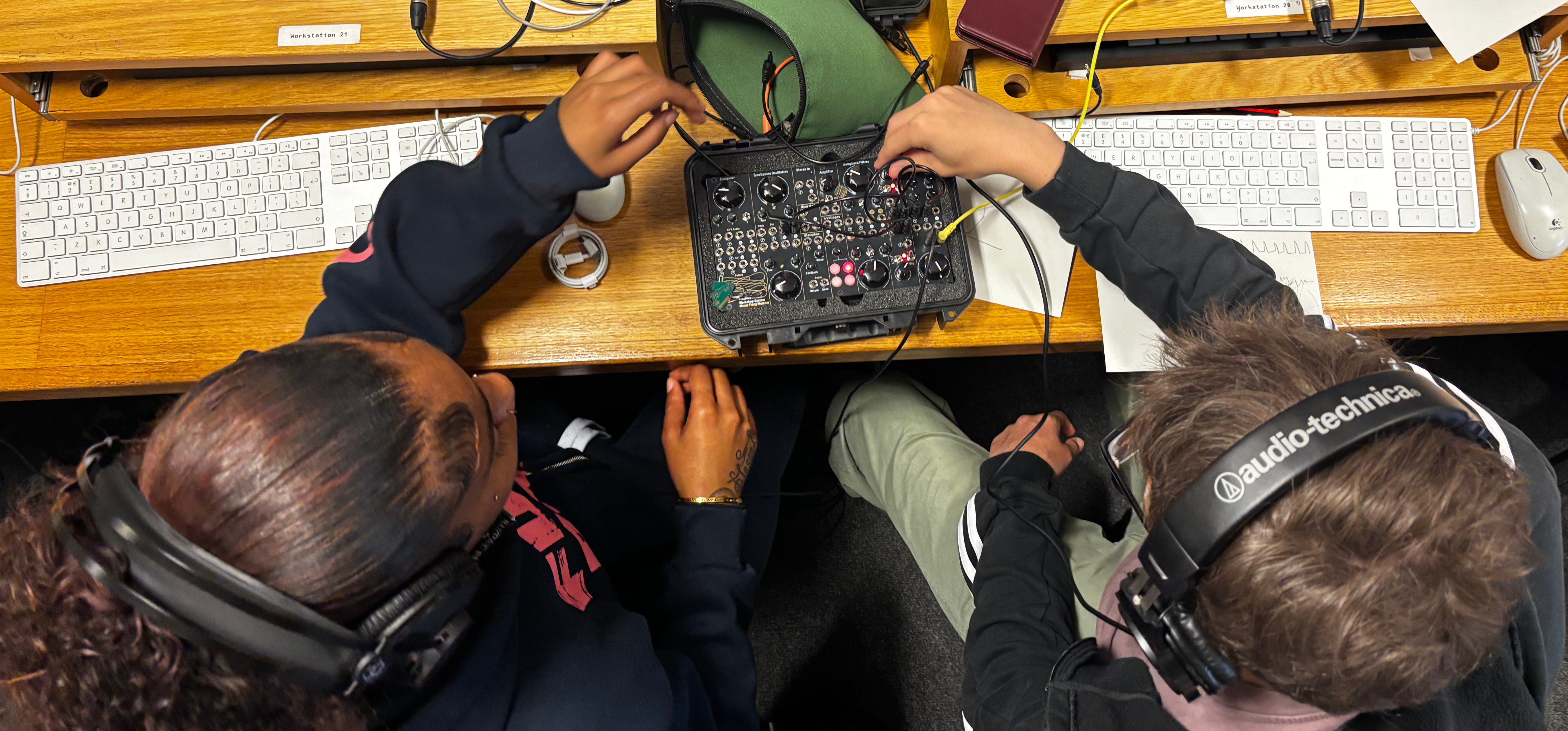 Last month I spent two phenomenal days at the BRIT School in South London (alumni: Amy Winehouse, Imogen Heap, FKA Twigs, Black Midi, Kae Tempest, etc etc). Day 1 was a miniature Dyski workshop - blind sketching, sine wave exercises, collaboration, noise, lots of laughter. Everyone went extremely deep extremely fast. Day 2 was listening to tracks they’d made with the systems: UK Garage, Eno-esque ambient, gritty breaks. Such a thrill to see the Workshop Systems being used like this. Thanks to David, Chris and Drew for your support. If you’d like to do something like this, get in touch.