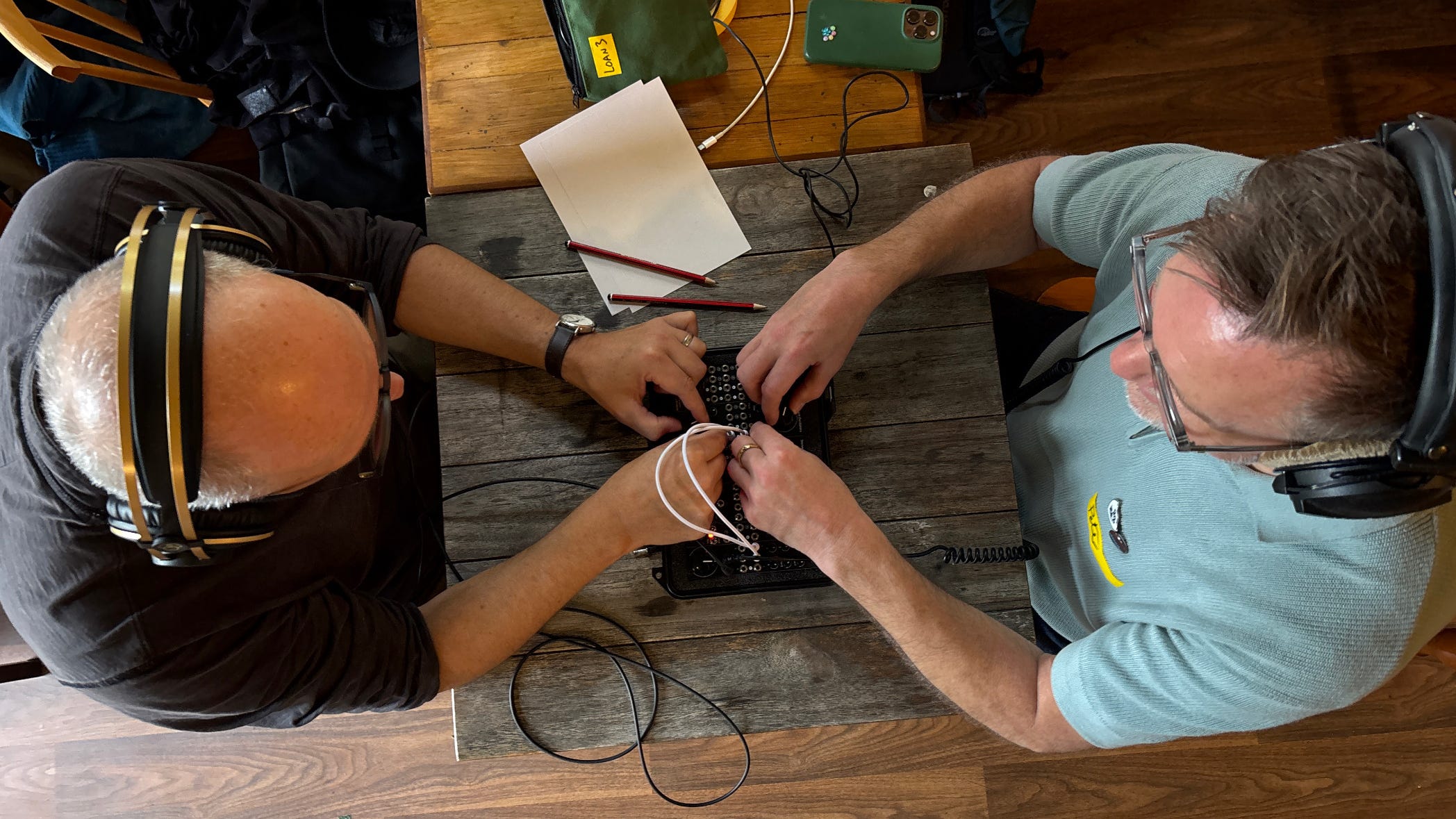 At the start of September the Workshop System loan set went to Whitstable on the Kent coast for a fun, intense, day-long workshop hosted by Coastal Electronauts. We started with Sine Sketches, moving on to the One System Four Hands exercise shown above.